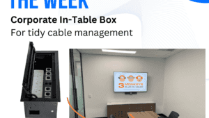 PRODUCT OF THE WEEK:Corporate Flush Mounted In-Desk Box - Provides Power and Data services to your boardroom table with neat and tidy cable m...